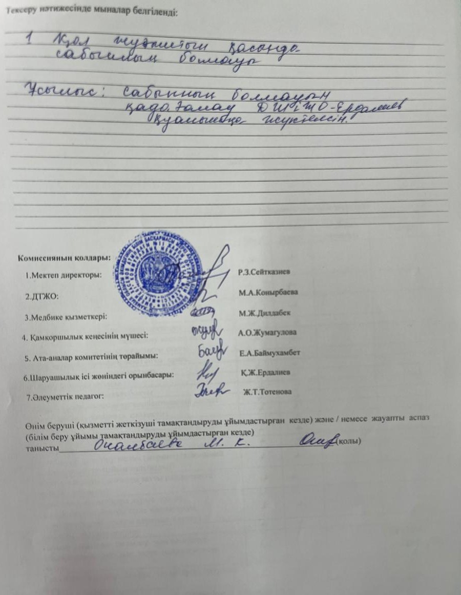 Тамақтану сапасына мониторинг жүргізу актісі » Әмеди Хасенов атындағы №11 жалпы білім беретін мектебі
