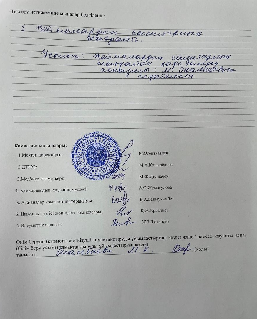 Тамақтану сапасына мониторинг жүргізу актісі » Әмеди Хасенов атындағы №11 жалпы білім беретін мектебі